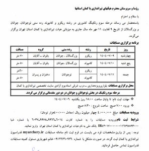 مرحله سوم رنکینگ کشوری مهرماه در تهران برگزار میشود.